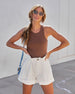 Paper bag is so in! Our Oaklynn Pocketed Paper Bag Shorts come in a white hue. Designed with front + back pockets and a cuffed hemline.